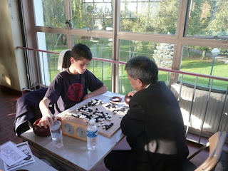 Bydlíme jen 3 km od hracího místa, tak jsme to ráno vzali procházkou. Registrace měla začít v 10:30, my dorazili po desáté a v hrací místnost bylo tak mrtvo, že jsme opravdu znejistěli. Naštěstí během konzumace snídaňových croissantů v nedalekém bufítku se začaly trousit hloučky hráčů a v 11 se začalo registrovat. Inu, přece jen Belgie je napůl Francie a tak se není čemu divit. S hodinovým zpožděním začalo ve 13:00 první kolo. Hraje 99 hráčů, 1 hodina na partii, bjojomi 15 tahů na 5 min. První dvě desky jsou přenášeny na Pandanetu.